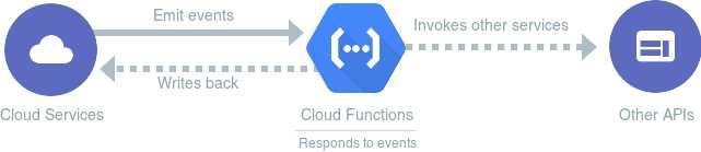 - 후자는 Google Cloud Pub/Sub의 메세지 또는 Google Cloud Storage 버킷의 변경 사항을 통해 Cloud Functions를 간접적으로 호출