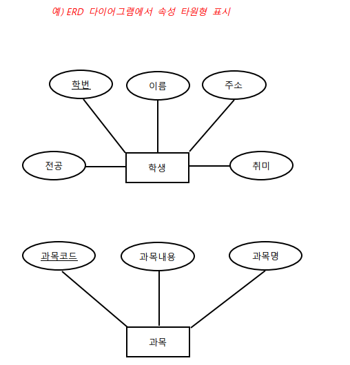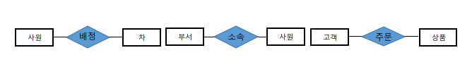 - 타입은 마름모를 사용하여 표현한 후 그 관계에 연관된 엔터티에 선으로 연결하여 표시