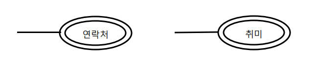 - 다중 값 속성(Multivate Attribute) : 다중 값 속성은 한 엔터티에 대해서 여러 개의 값을 갖는 것으로써, 취미 속성