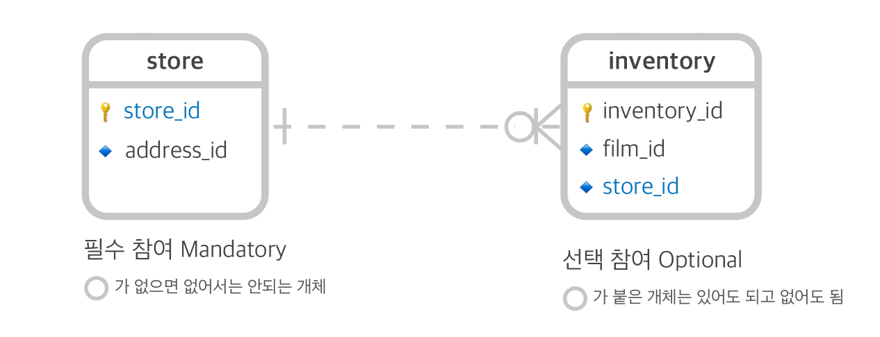 inventory 개체가 없어도 store 개체는 있을 수 있고, store 개체가 없다면 inventory 개체도 있을 수 없음.