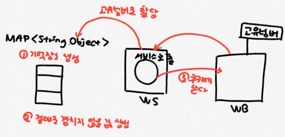 * 동시 요청 시 여러개의 쓰레드가 하나의 서블릿 인스턴스를 사용할 수 있다.*/