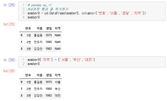 10) Dafa Frame 유형 : 새로운 행과 열 추가하기