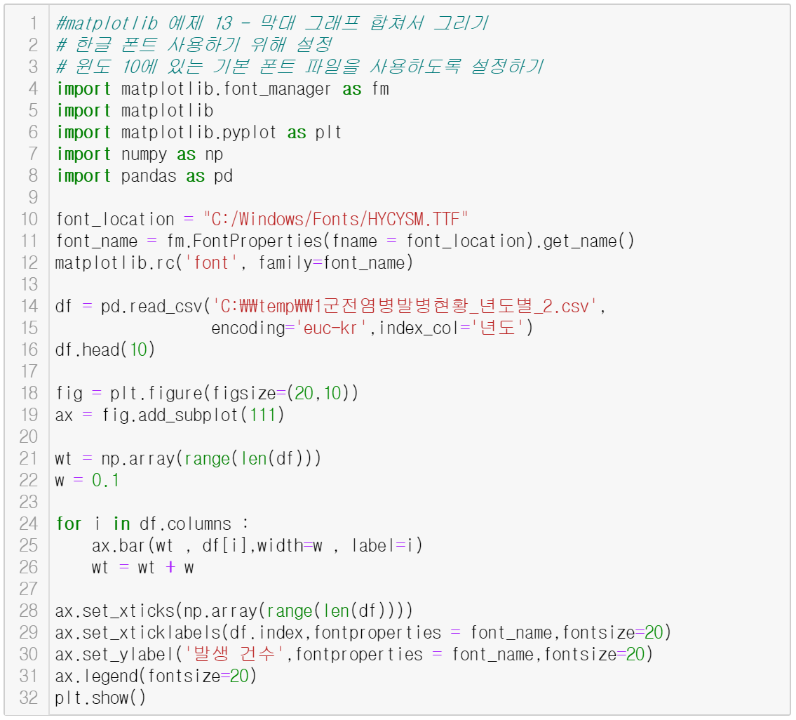 - 데이터분석 라이브러리인 pandas와 matplotlib 의 기반으로 사용