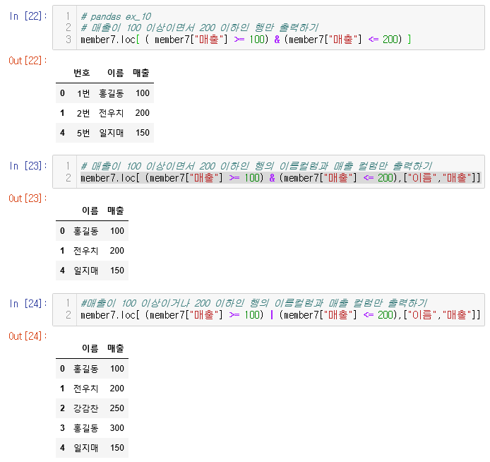 9) DataFrame 유형 : 원하는 조건으로 조회